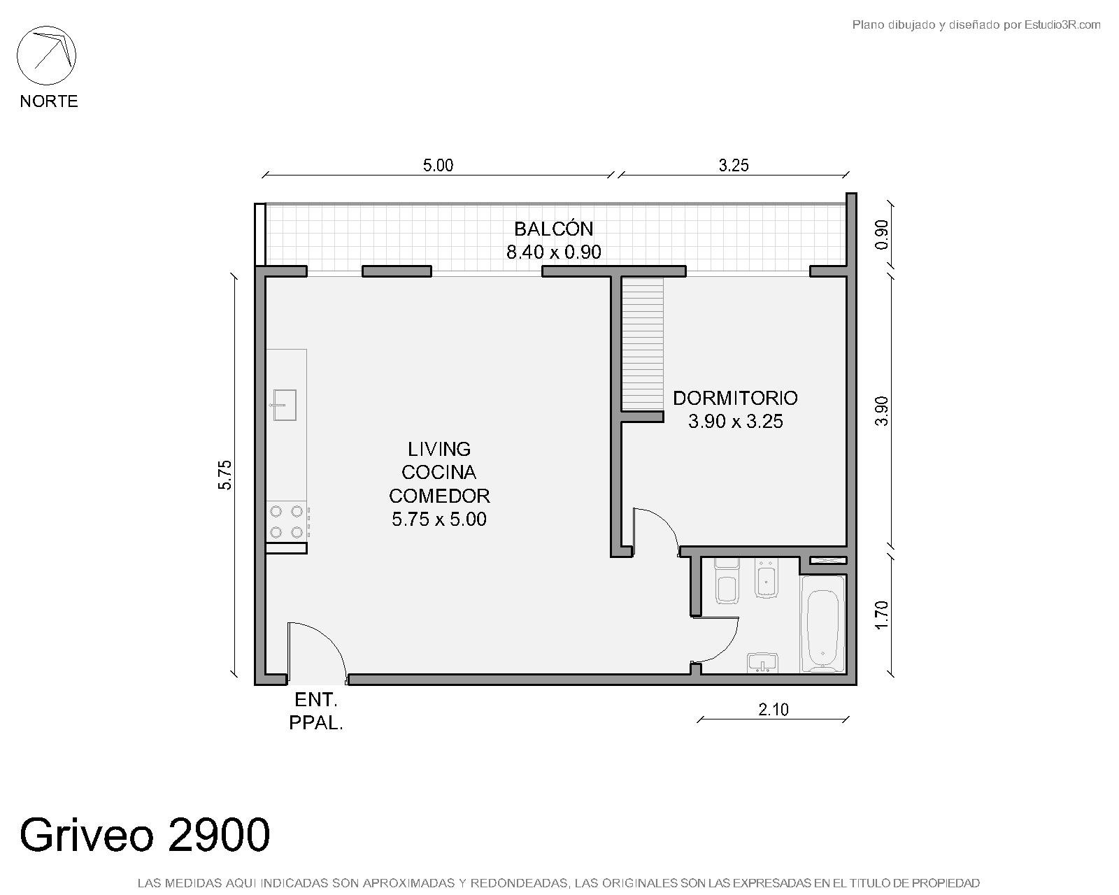 Departamento 2 ambientes en Griveo 2900, Villa Pueyrredón. Living con cocina integrada, salida a balcón, espacio para lavarropas y termotanque individual. Baño completo. Edificio del 2010 con ascensor, ubicado en primer piso. Cuenta con espacio privado en la terraza común con parrilla. Cochera descubierta a 50 metros (en Pje. Joaquín Castellanos 4885). 4 departamentos por piso. Toda la información del aviso, incluyendo medidas, precio, impuestos, servicios, etc. son estimativos, sujetos a modificación y no vinculantes, según lo dispuesto en el art. 973, Cód. Civ. y Com.