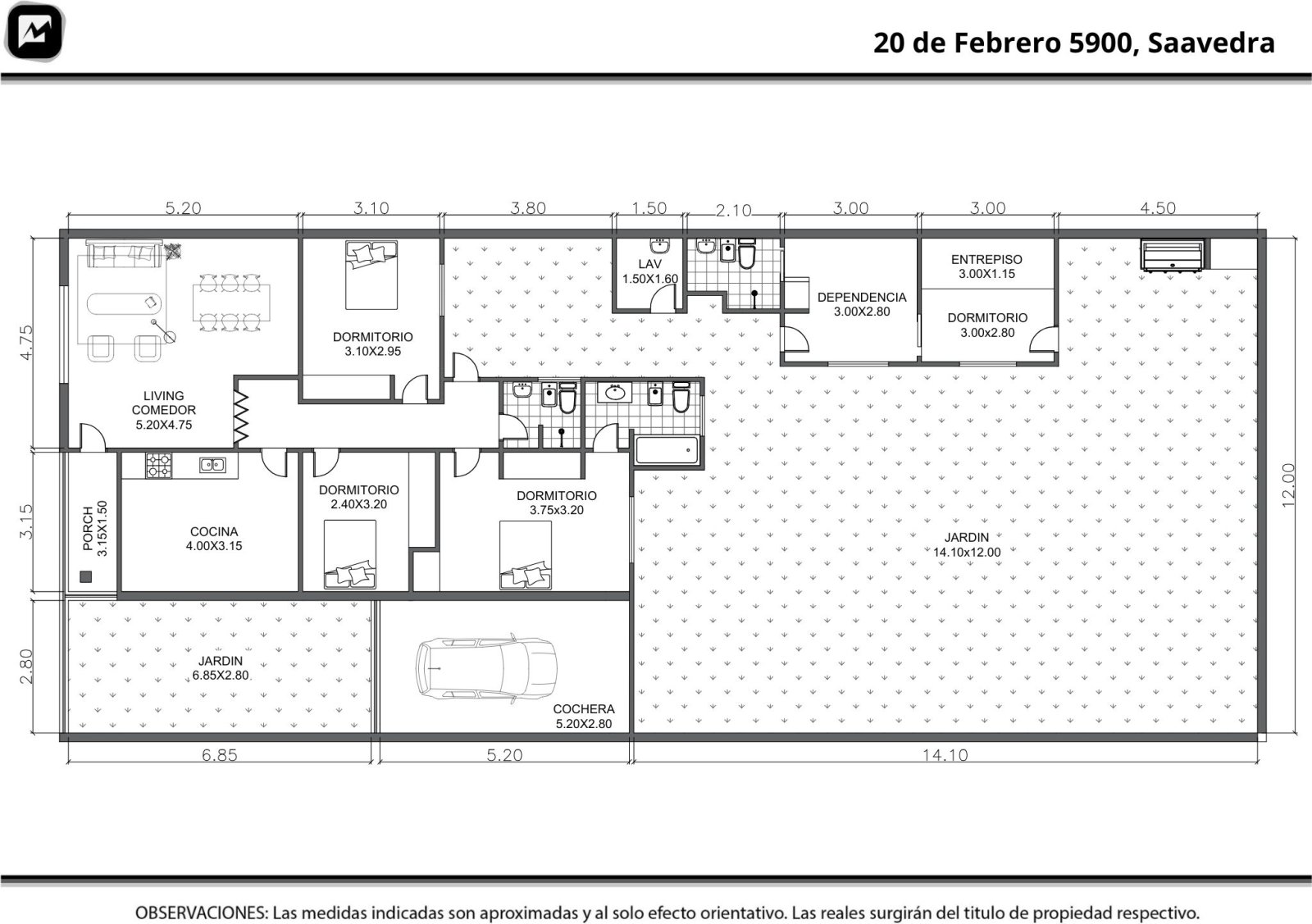 Casa de 4 ambientes sobre lote propio de 11,12 x 30,85 m (343 m² totales, 166 m² cubiertos). Distribuida en una planta, con espacios amplios y luminosos. Living principal conectado con cocina y comedor diario. Dos dormitorios, baño completo y tercer dormitorio en suite. Reciclada en la década del 80. Exterior con patio, jardín orientado al norte, lavadero, habitación y baño de servicio. Cochera cubierta y segundo espacio descubierto para auto. Apto crédito: si Ubicación: 20 de Febrero 5939, barrio Cornelio Saavedra. Entorno residencial y tranquilo, cercano a Av. Balbín, Parque Saavedra y múltiples líneas de colectivo. Buena conectividad hacia zona norte y centro. Toda la información del aviso, incluyendo medidas, precio, impuestos, servicios, etc. son estimativos, sujetos a modificación y no vinculantes, según lo dispuesto en el art. 973, Cód. Civ. y Com.