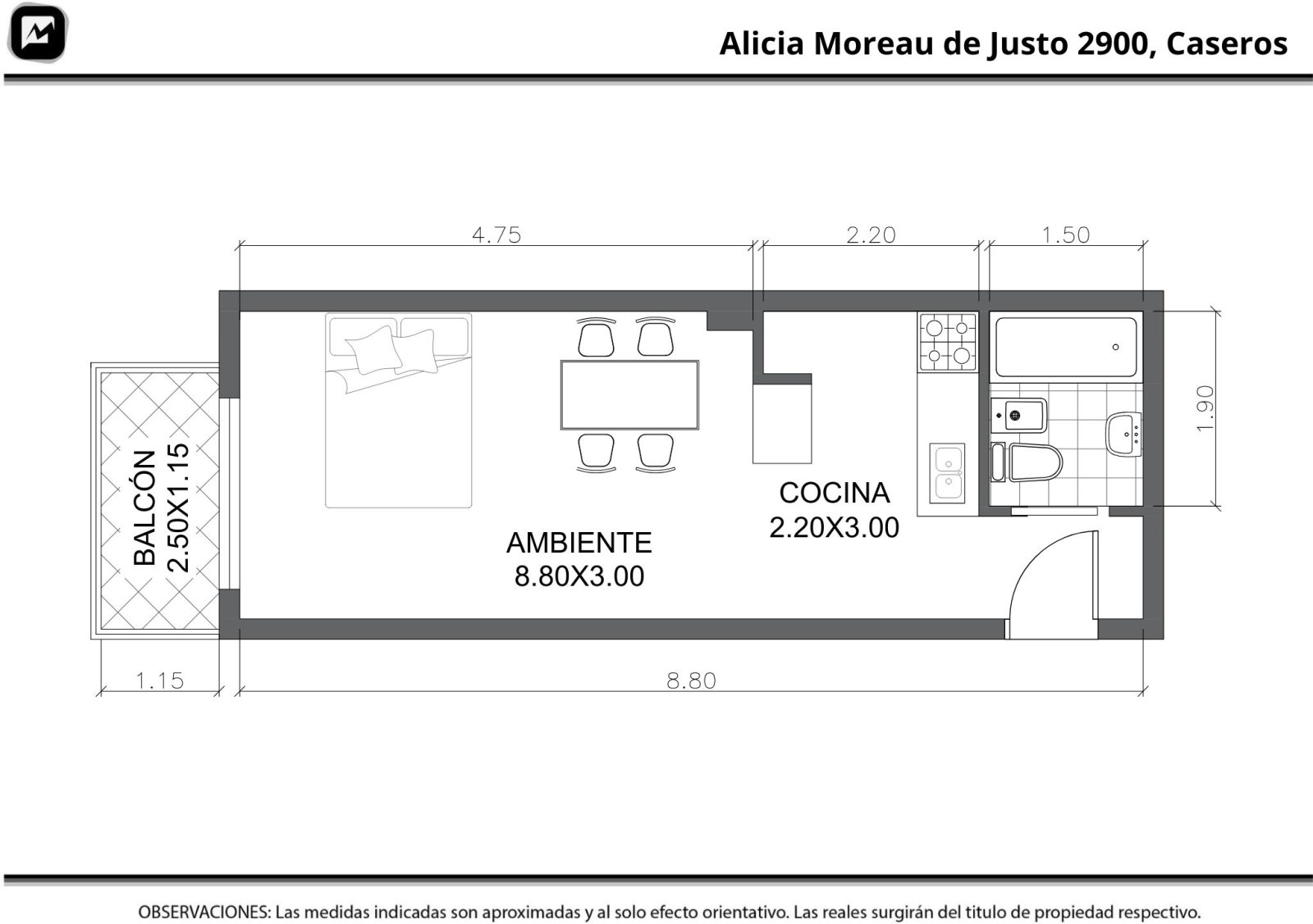 Monoambiente ubicado en octavo piso, disposición contrafrente, con buena luminosidad y salida a balcón. Ambiente único con cocina integrada y baño completo. Edificio con ascensor. Distribución funcional y ambientes bien ventilados. Condiciones de alquiler: - Contrato a 2 años, ajuste trimestral por IPC - 1 mes de alquiler adelantado - Demostración de ingresos - Seguro de caución (Finaer, Garantía Ya, Premium, Hoggax, etc.) NO TOMAMOS GARANTÍA PROPIETARIA Toda la información del aviso, incluyendo medidas, precio, impuestos, servicios, etc. son estimativos, sujetos a modificación y no vinculantes, según lo dispuesto en el art. 973, Cód. Civ. y Com.