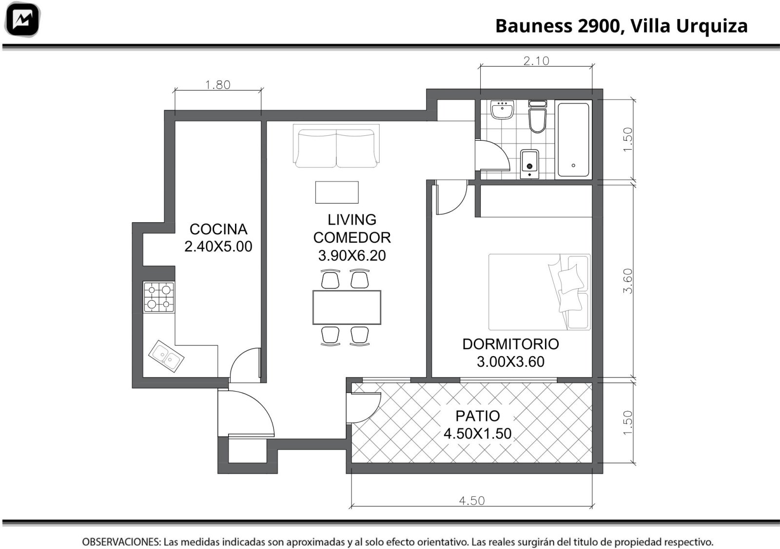 Departamento de dos ambientes en planta baja interna con patio de aire. Ingreso a living comedor, cocina separada con espacio para lavarropas, dormitorio con placard empotrado y baño completo. Patio interno elevado que aporta ventilación Edificio con dos ascensores y terraza de uso común. La propiedad está ubicada a metros de Av. Triunvirato y Av. Congreso, con cercanía a estación de subte, tren y variedad de medios de transporte, en el barrio de Villa Urquiza. ABL $ — AySA: $ 18.377 —. Accesible: SI (Ley 5.115). Apto crédito. Toda la información del aviso, incluyendo medidas, precio, impuestos, servicios, etc. son estimativos, sujetos a modificación y no vinculantes, según lo dispuesto en el art. 973, Cód. Civ. y Com.