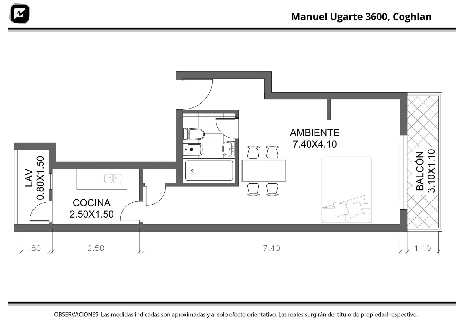 Mono ambiente al frente en 4.º piso. Cocina separada y lavadero separado conexión para lavarropas, termotanque y aire acondicionado frío/calor. Baño. Superficie aproximada: 28 m² cubiertos y 5 m² de balcón. Edificio con 30 años de antigüedad, desarrollado sobre lote común. Estado general: muy bueno. Semi Piso. Expensas Febrero 2026: $100.000 aprox Ubicación Manuel Ugarte 3617, entre Av. Melián y Washington, en una zona residencial tranquila y muy bien conectada. A 3 cuadras de Av. Monroe y 1 cuadra de Av. Congreso. A 4 cuadras de la estación de tren Coghlan (MITRE) y a 12 cuadras del subte Congreso de Tucumán (Línea D). Excelente acceso a múltiples líneas de Colectivos: 1, 2, 5, 8, 34, 36, 49, 63, 85, 86, 88, 92, 96, 99, 104, 107, 113, 114, 136, 163, 166, 172, 181, 182. Toda la información del aviso, incluyendo medidas, precio, impuestos, servicios, etc. son estimativos, sujetos a modificación y no vinculantes, según lo dispuesto en el art. 973, Cód. Civ. y Com. Toda la información del aviso, incluyendo medidas, precio, impuestos, servicios, etc. son estimativos, sujetos a modificación y no vinculantes, según lo dispuesto en el art. 973, Cód. Civ. y Com.